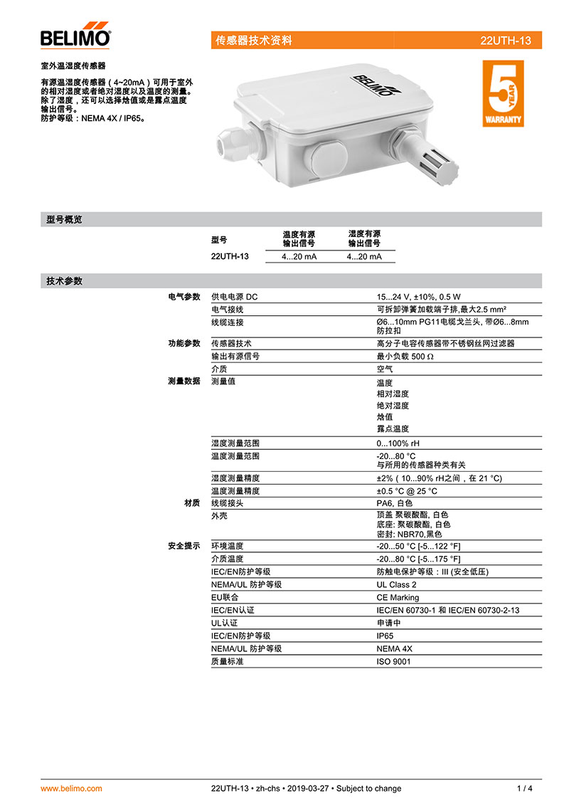 >> 22UTH-13室外溫濕度傳感器