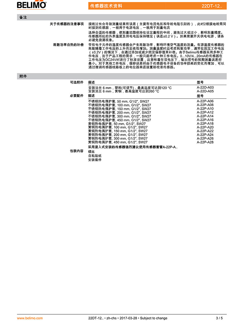 22DT-12.. 風(fēng)管/浸入式溫度傳感器
