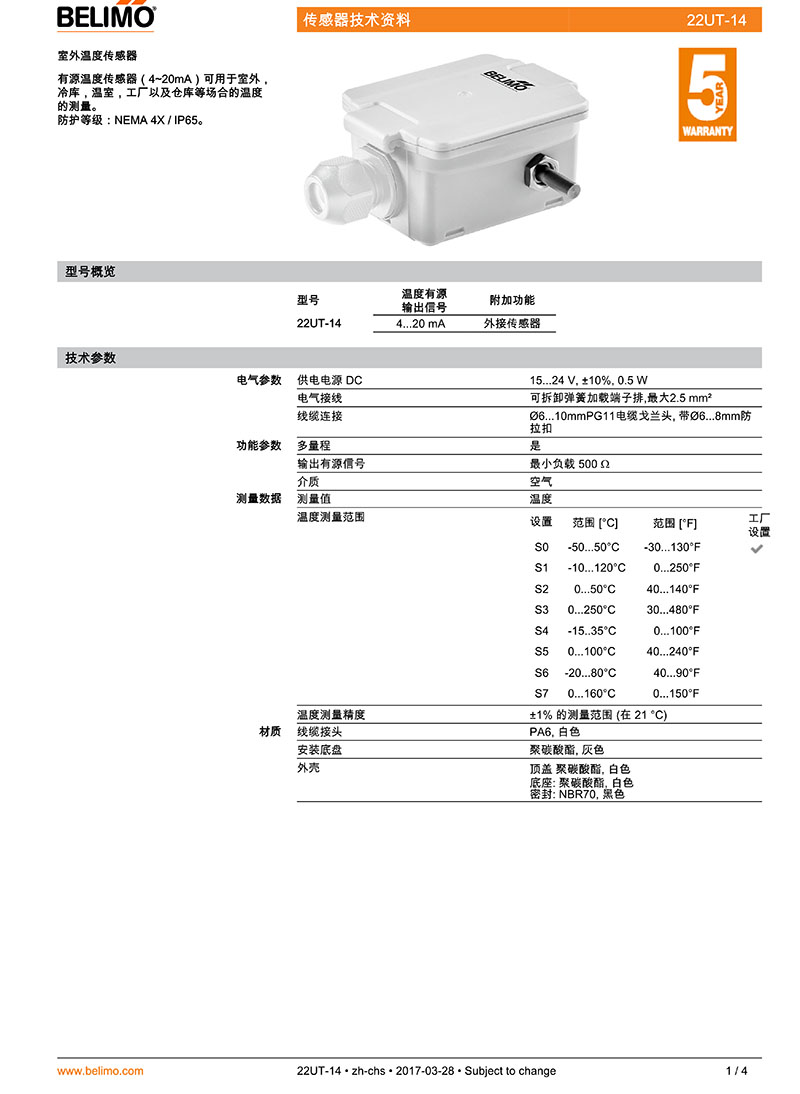 >> 22UT-14室外溫度傳感器