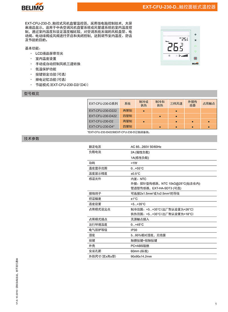 >> EXT-CFU-230-D..觸控面板式溫控器
